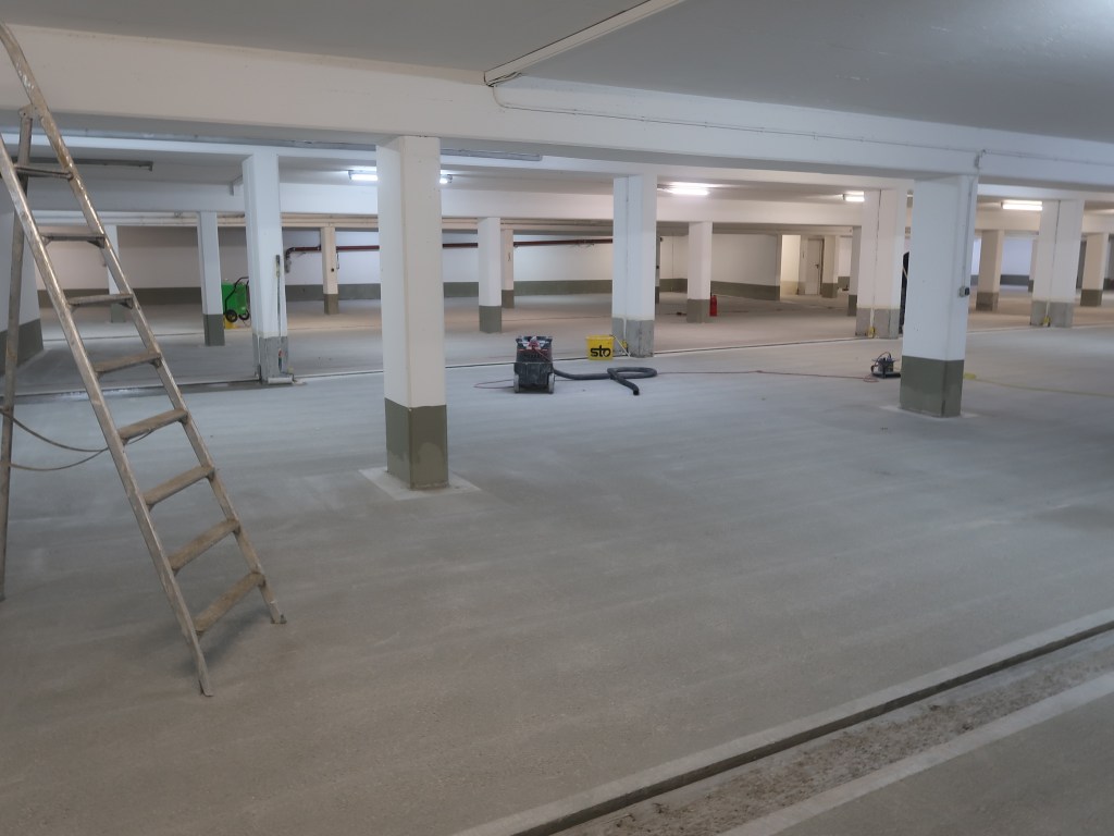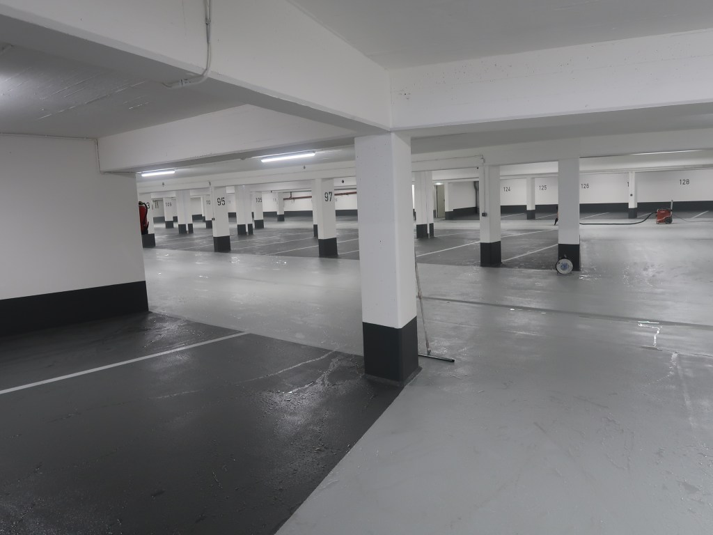 Tätigkeit: Instandsetzung eingeschossige Tiefgarage mit Oberflächenschutzsystem OS 8