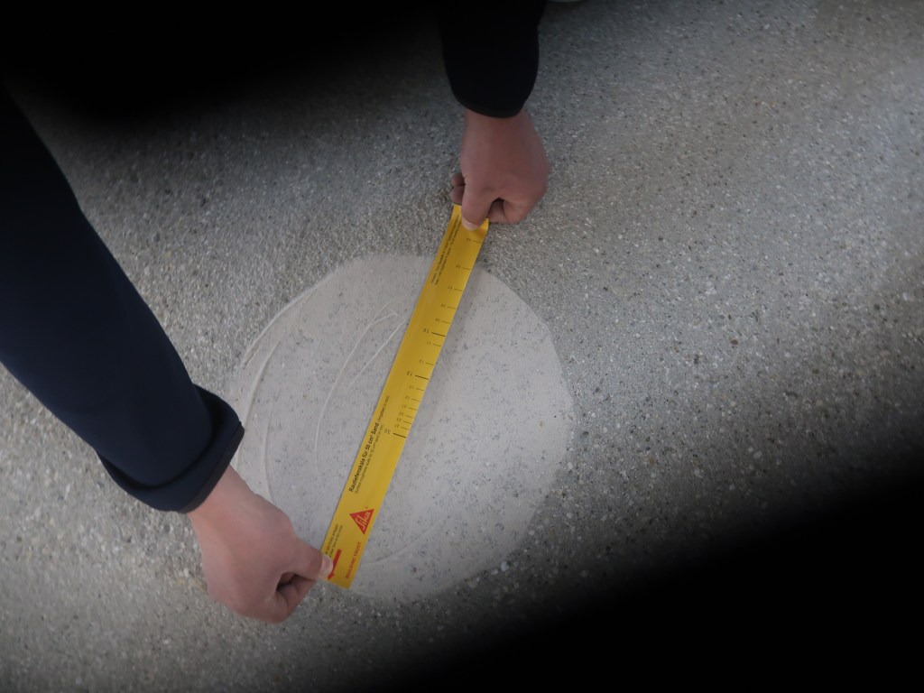 Besonderheit: PCC Gefällbeton vollflächig, wasseremuliertes Epoxidharz