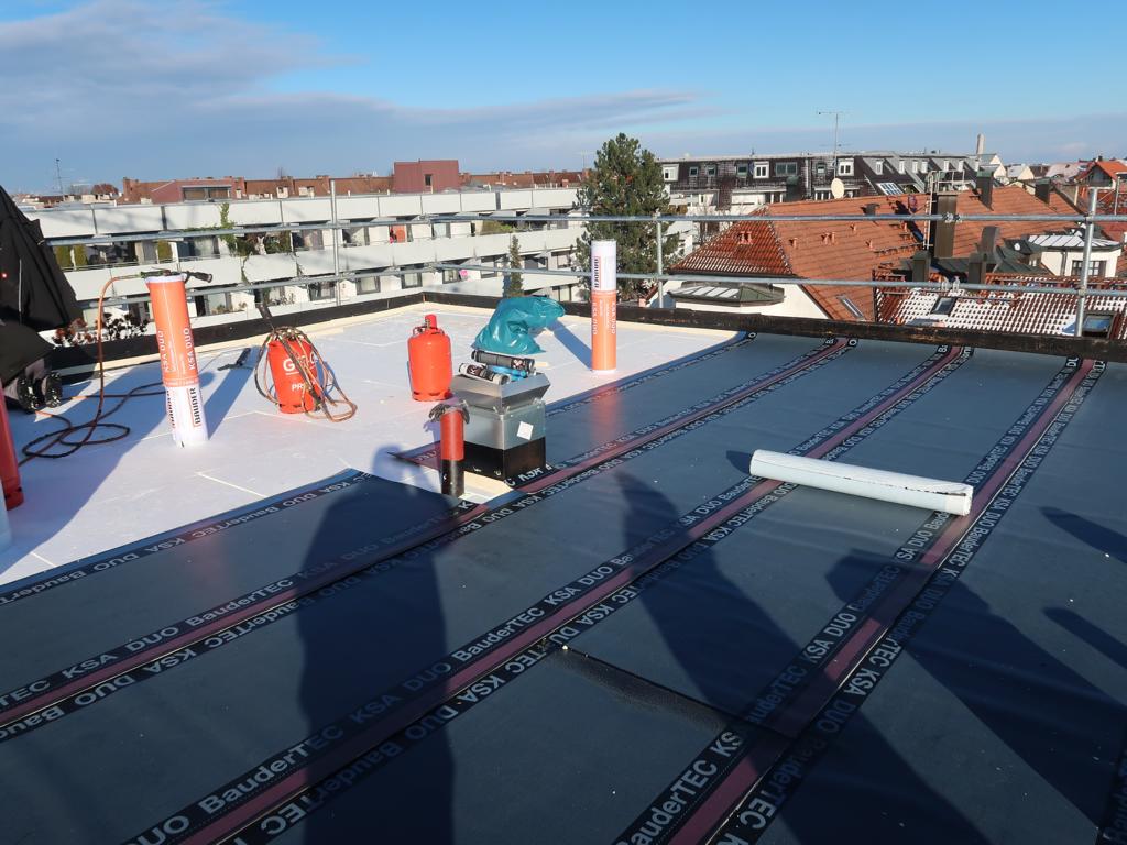 Leistung: Kompletterneuerung eines mehrschichtigen Flachdachaufbaus