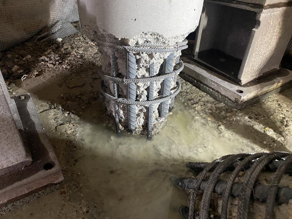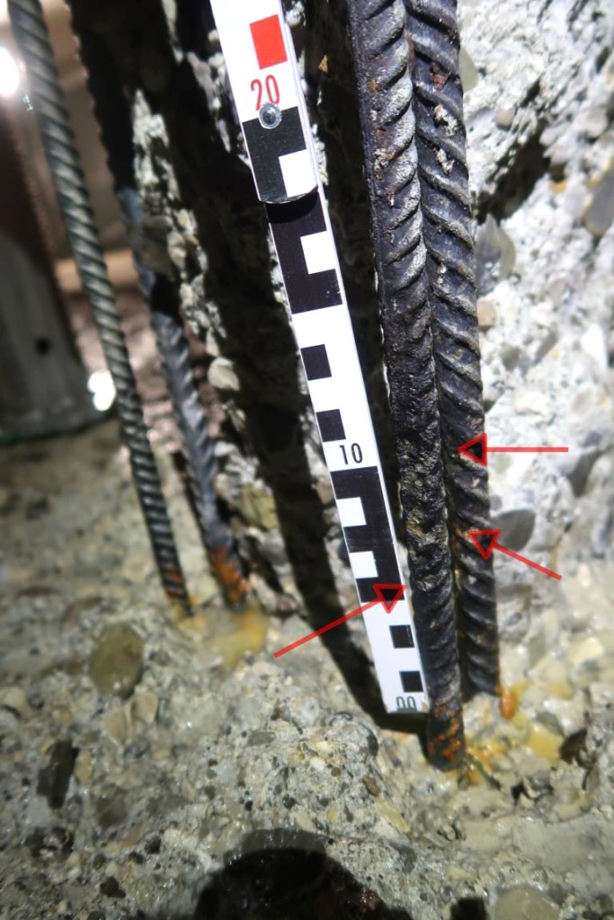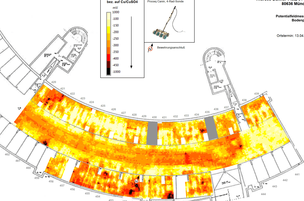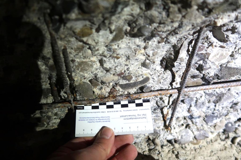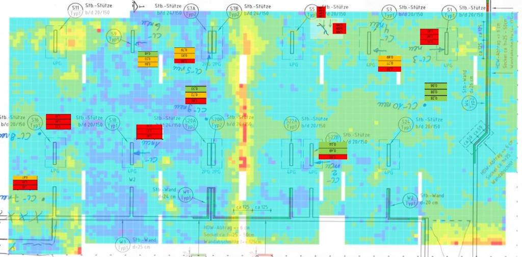 Besonderheit: sehr beengte Innenstadtlage, WU- Bauwerk mit hoher Wasserbelastung von außen. Hoher Schädigungsgrad der Bewehrung