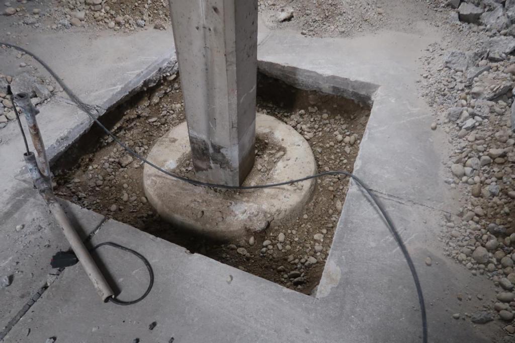 Konstruktion: Fundamentbalken unter Stützen mit nichttragender Bodenplatte+Estrich